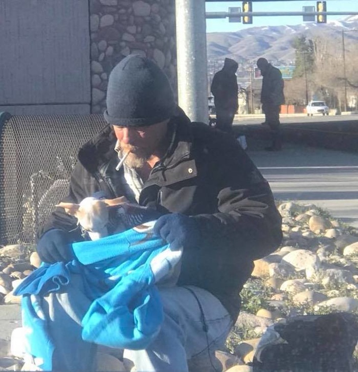 ▼這名街友救了一隻小狗,正在找人收養牠。