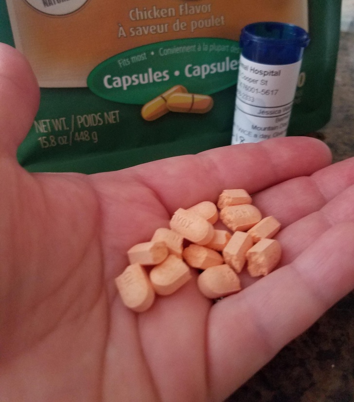 ▼「給狗狗買了藥,打開時才發現獸醫把藥片分成了兩半,防止我們不小心讓狗狗服用過量。」
