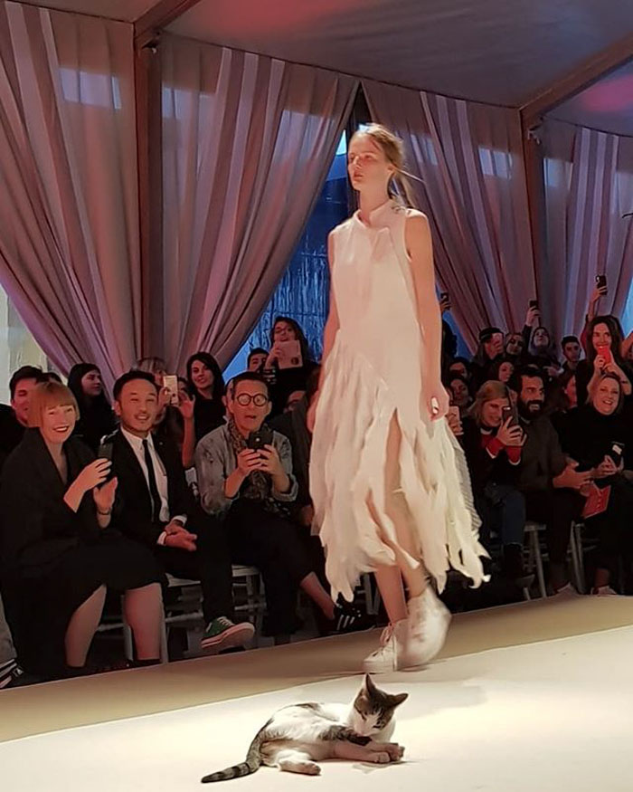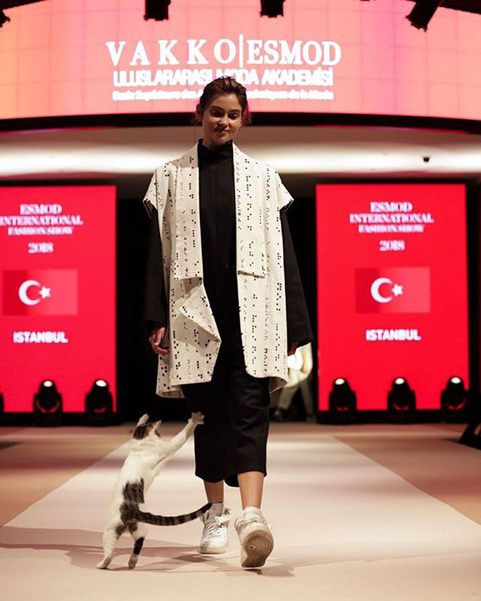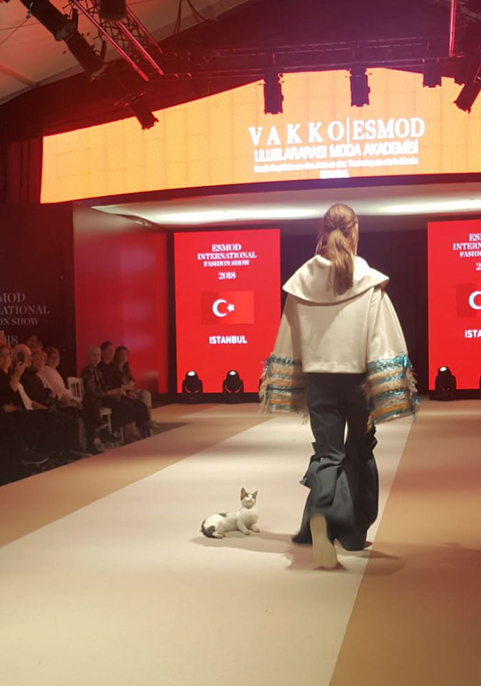 ▼時尚設計師Goksen Hakki Ali說「這隻貓不知道是從哪裡來的,但是牠的動機很明顯,牠想要大家的關注和讚賞」。很明顯,牠真的做到了!來看看牠的伸展台上的表現吧!