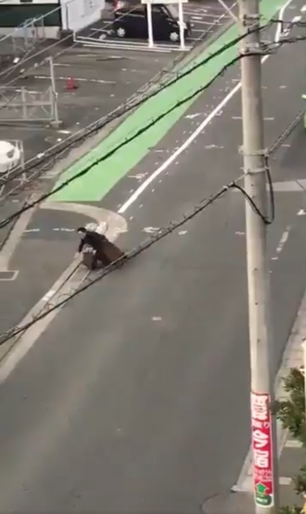 ▼從推特用戶「長坂幸樹」所分享的影片中可以看到,這隻野豬原本朝著鐵道的方向走去,結果突然一輛列車經過,疑似嚇到野豬導致牠往反方向衝去,撞飛了一名剛好路過的48歲上班族男子。