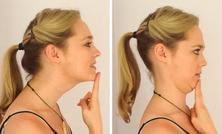 ▼下巴運動:將手指放在下巴上;雙目平視,輕輕推下巴,直到感覺頸部有伸展感為止;停留5秒鐘,抬起下巴。重複10次。