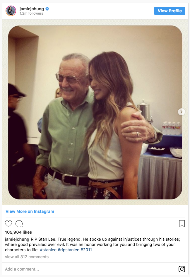 除了以上這些巨星和名人,對手DC也很尊敬地發文悼念:「是他改變了大家對超級英雄的印象,現在的漫畫會永遠都有他的影子。他的熱血和創意會讓我們永遠記住,當時的自己是為什麼會愛上這些故事。」