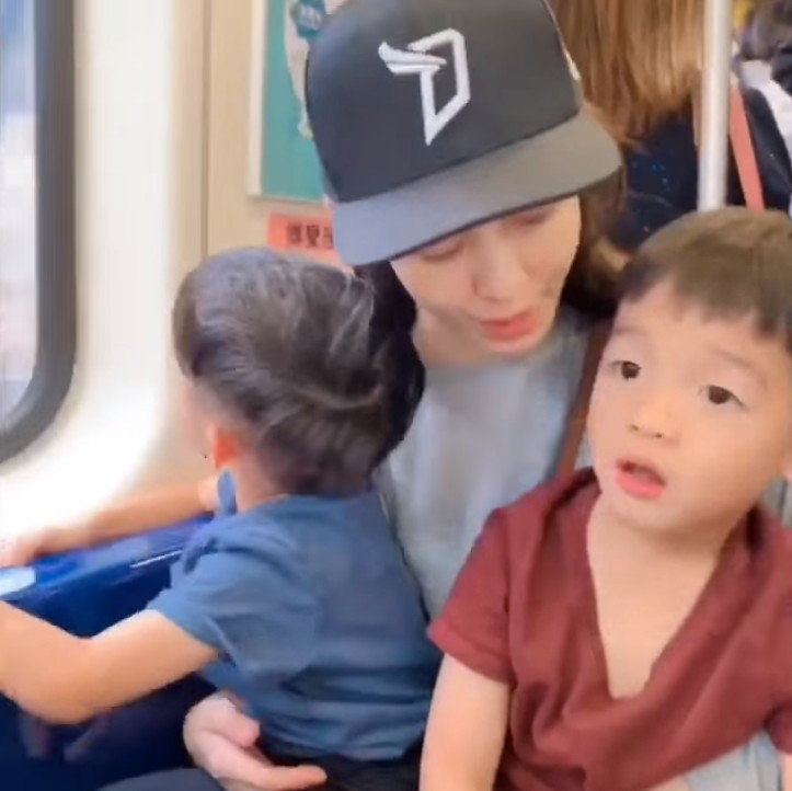 ▼接著黑人和范范帶著孩子前往搭捷運,一上車就發現剛好有位置,黑人也讓老婆和兒子坐下,聽到兒子問「爸爸站著嗎?」他帥氣地回應「我站著保護你們!」