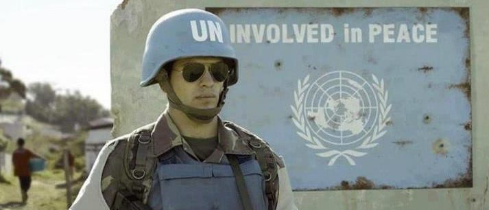 ▼「參與和平」加上士兵頭盔上的「UN」,變成了「不參與和平」。