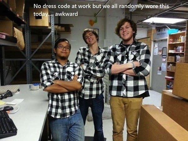 ▼公司沒有著裝規定,但他們不約而同穿了同一款襯衫。