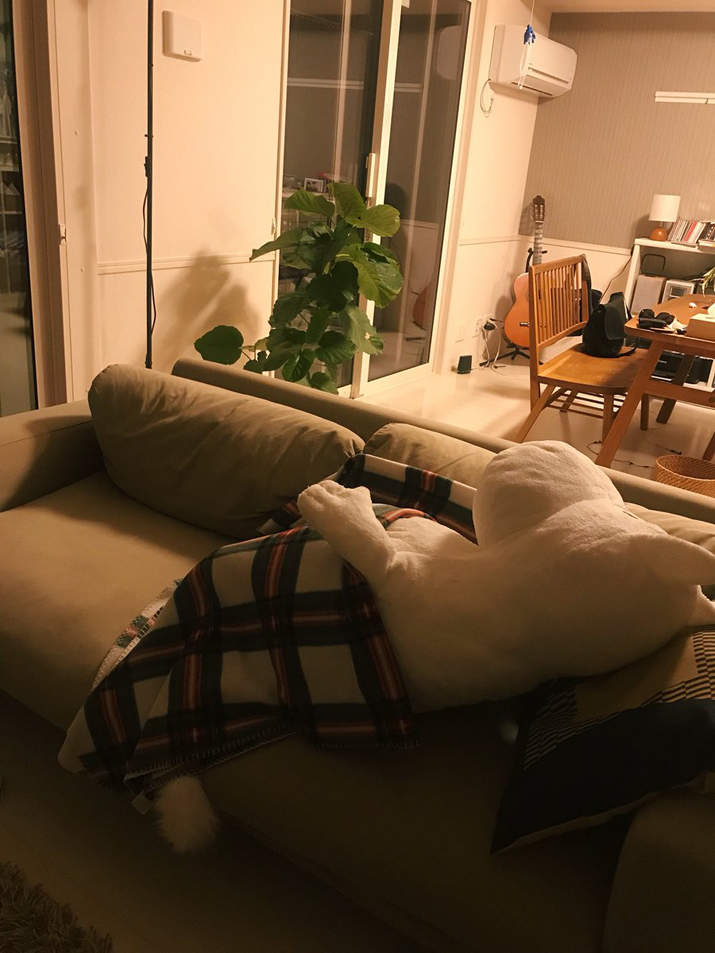 ▼​「嚕嚕米說,因為是借住別人家,所以睡沙發好了。時間晚了該睡了,晚安。」