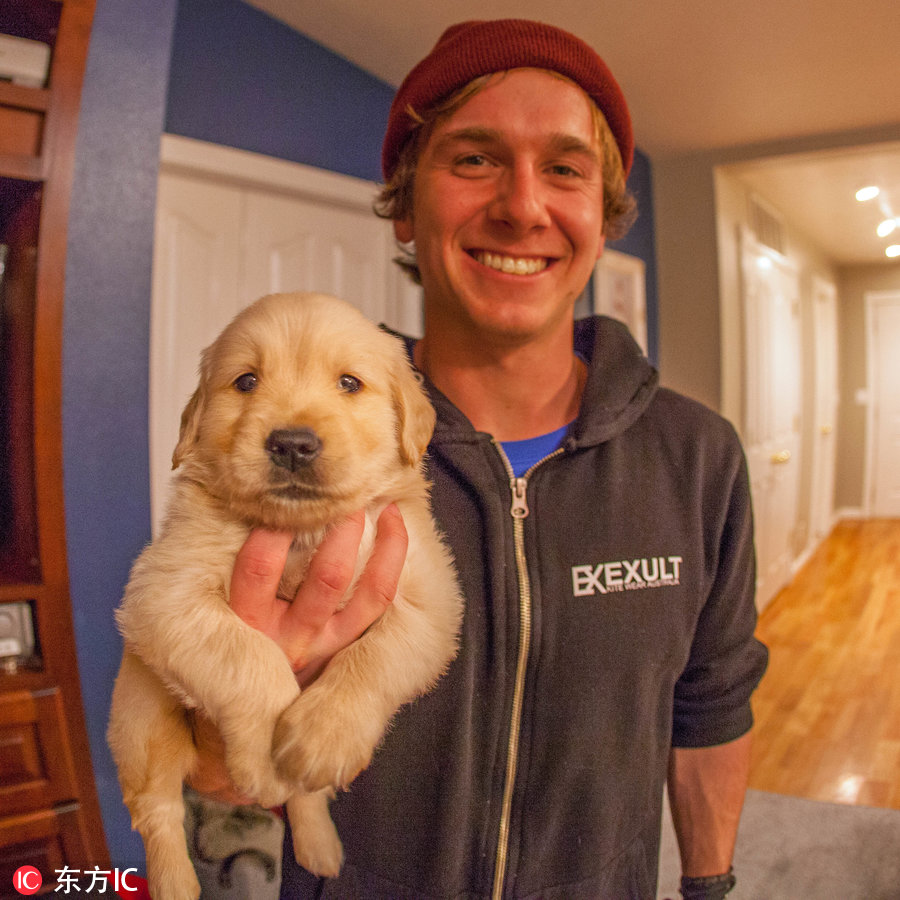 ▼消防員Paul 的一通電話帶來了轉機。 Paul是處理Andrew交通事故的消防員,在事故後一直與Andrew持續保持聯繫,也協助他度過了最艱難的時光。Paul說他家裡的金金生了幾隻幼崽,如果Andrew準備好了,他們願意將家中的小金金交給他照顧。