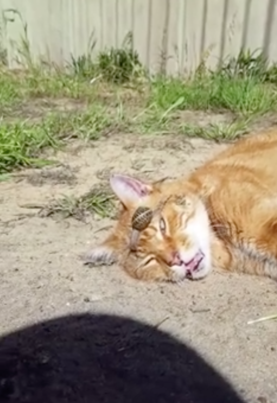 2018年12月11日睡眠不好的人一定很羨慕澳洲這隻叫做Noodles的貓咪。牠每天最喜歡做的事,就是躺在院子的草皮上曬太陽,順便呼呼大睡。那天女主人Twiggy Cheng經過院子時,發現牠躺在地上睡得正香,就連大蝸牛從臉上爬過都沒有感覺。她忍不住將這一幕拍攝下來分享出去,網友們看到後都哈哈大笑。