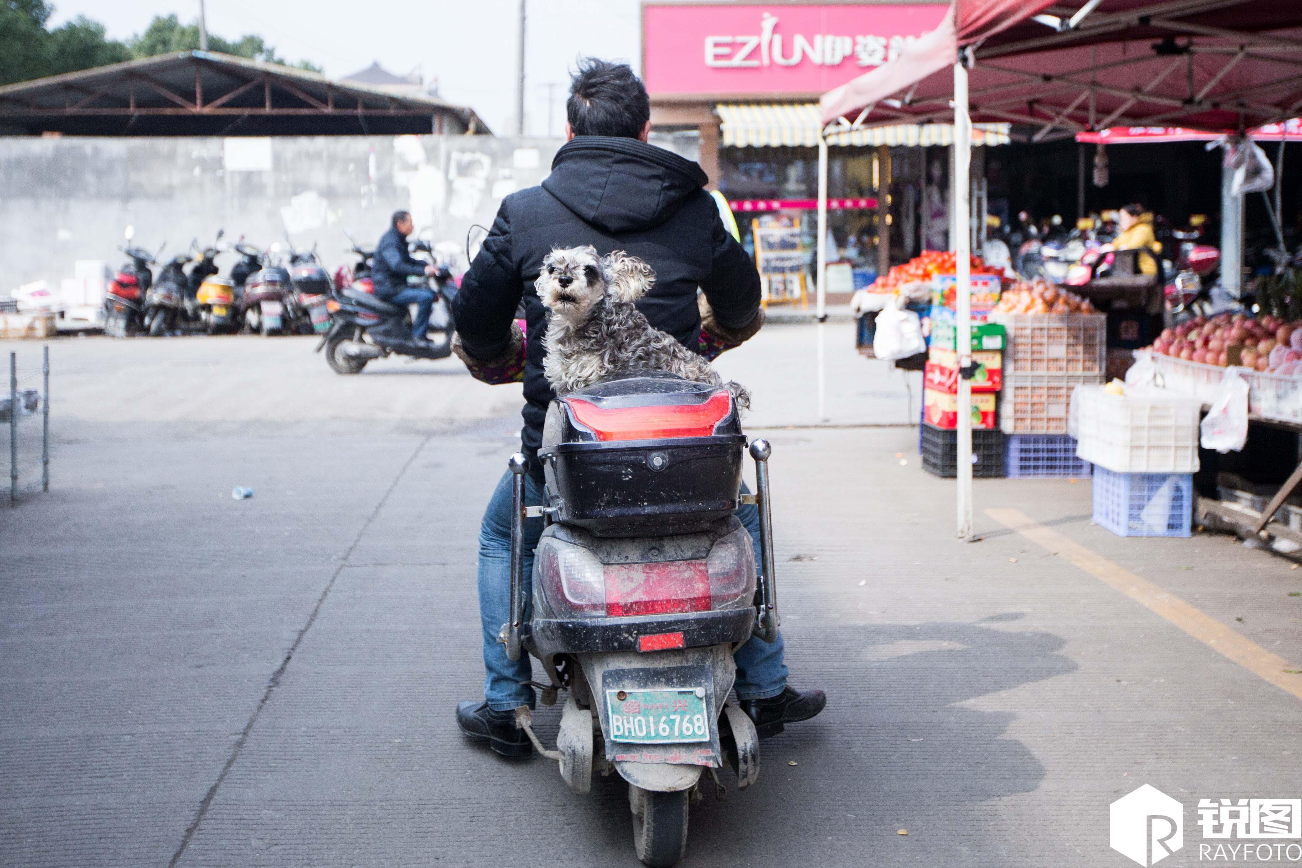 ▼樂樂每天早上6點跟著宋阿姨來菜市場,10點時則搭著男主人的機車回家。