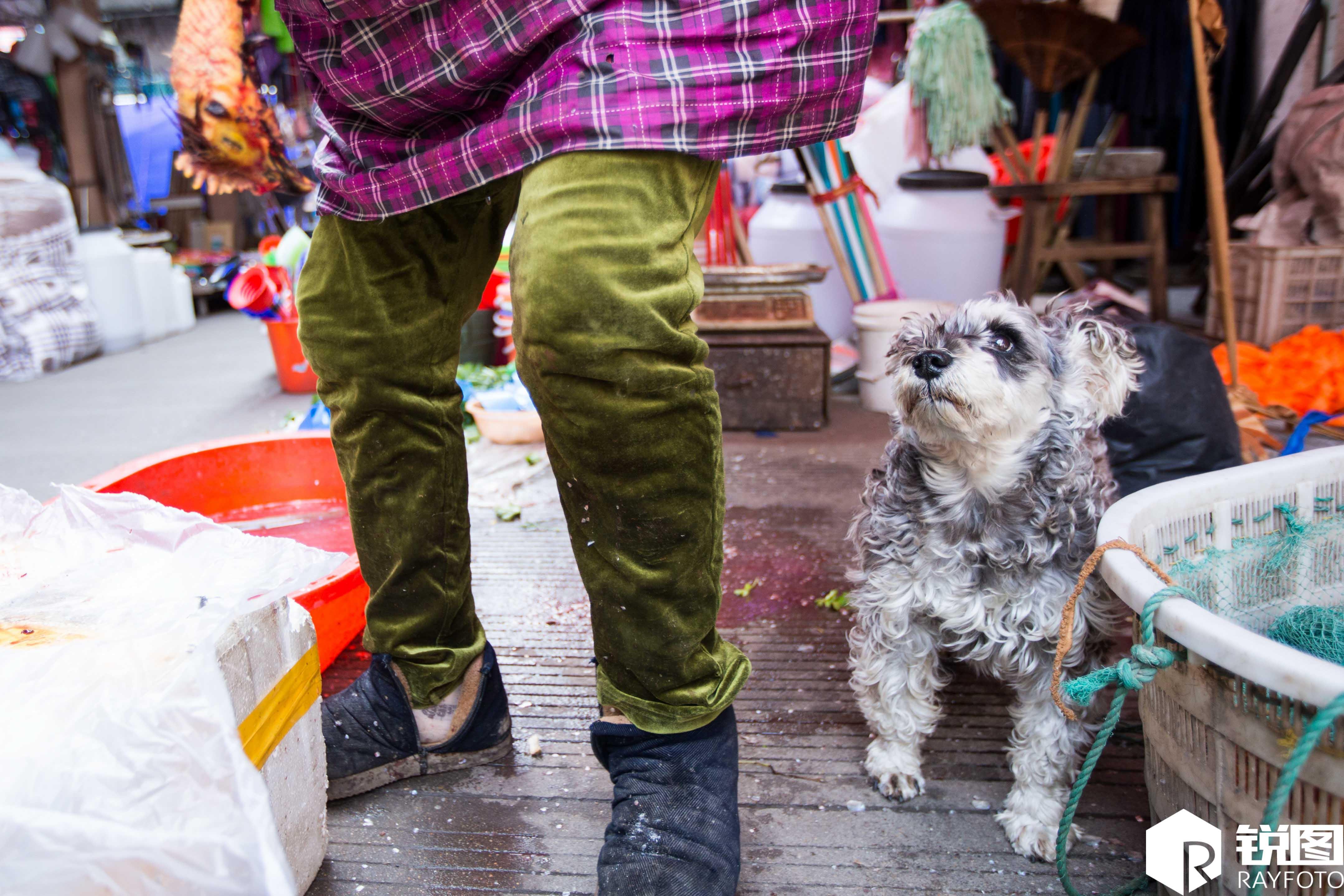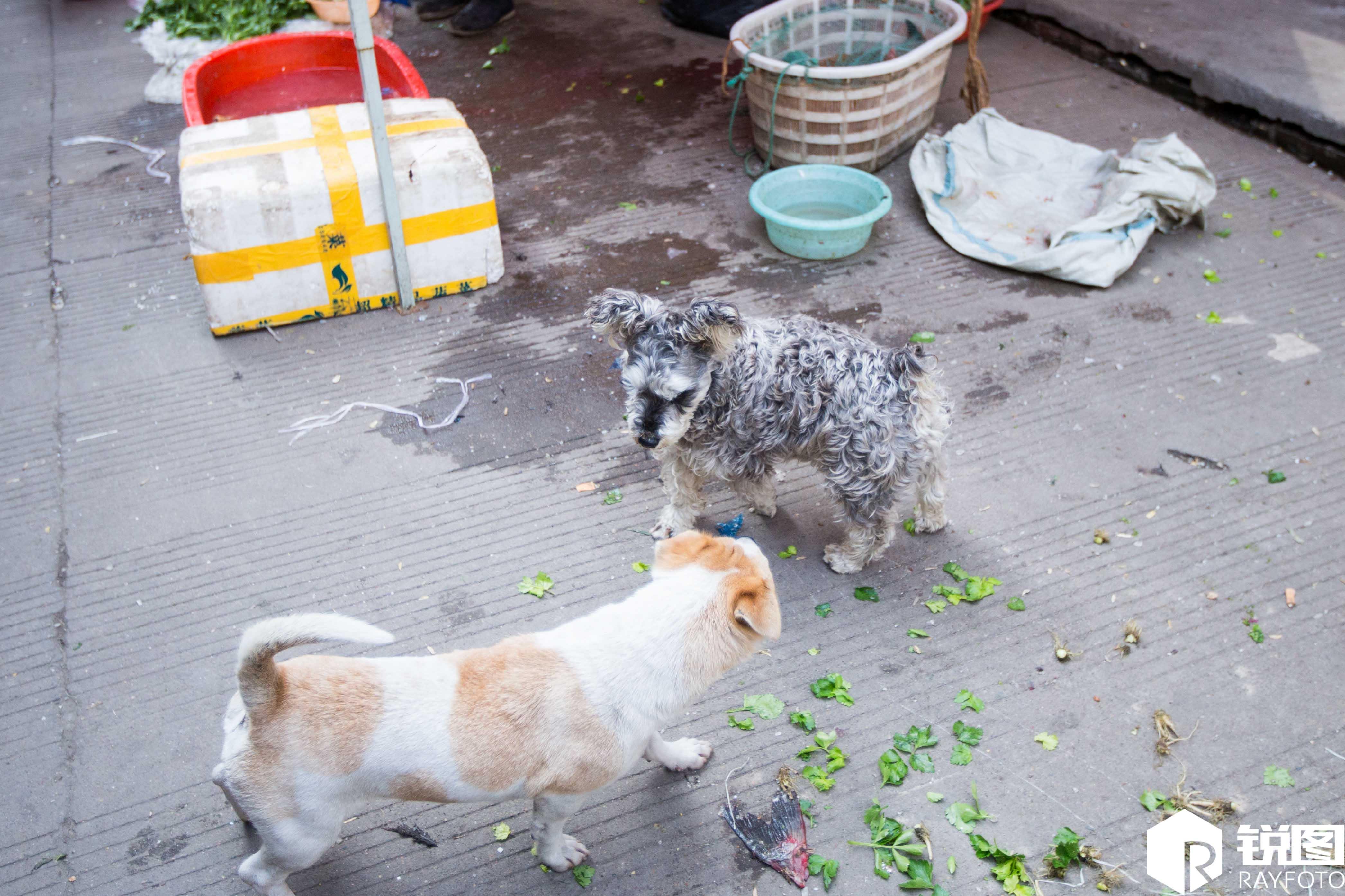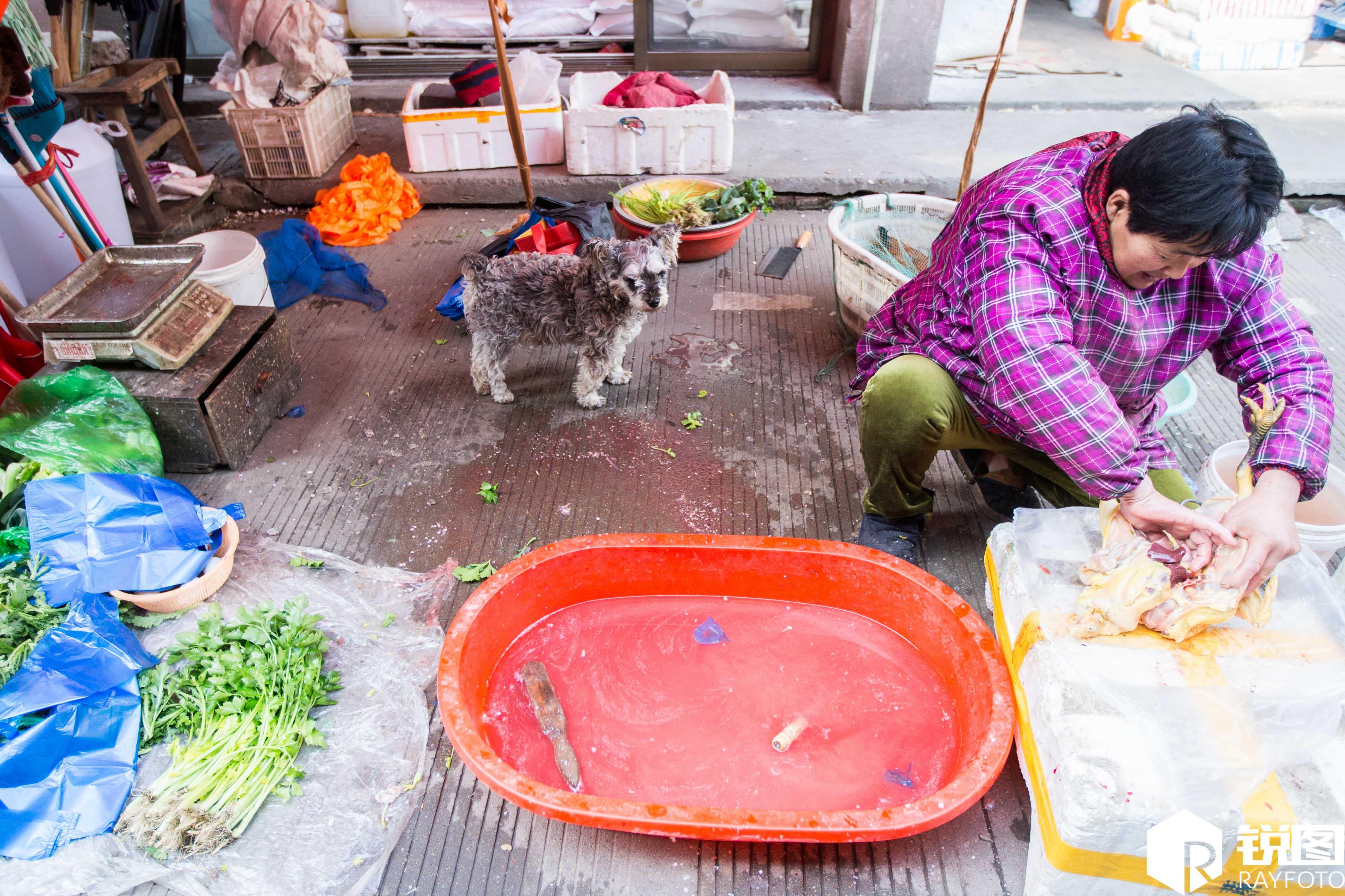 ▼當宋阿姨在殺雞時,他就負責幫忙顧攤,同時眼神也一直往主人的方向望去。