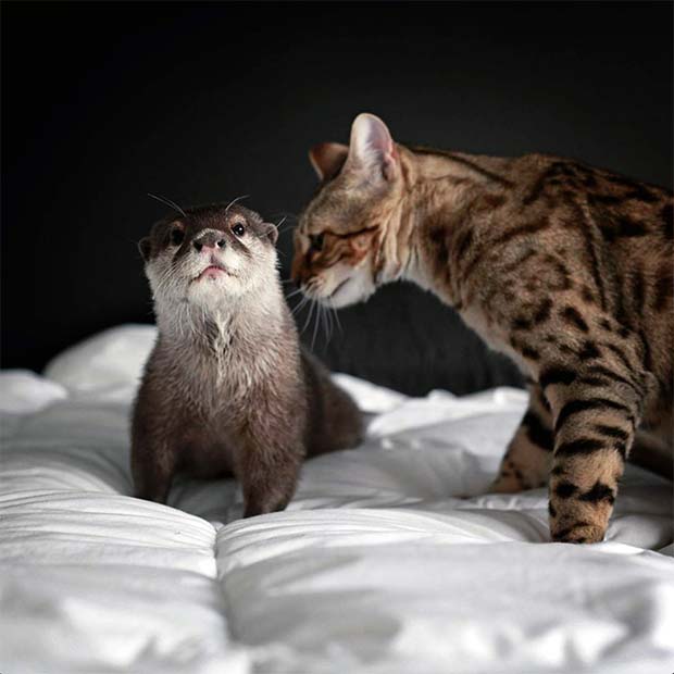 2018年11月21日生活在人類世界中的動物很容易交到不同物種的朋友。比如下面這隻叫做Pip的水獺和這隻叫做Sam的貓咪,牠們來自不同的世界,卻是世界上最好的朋友。