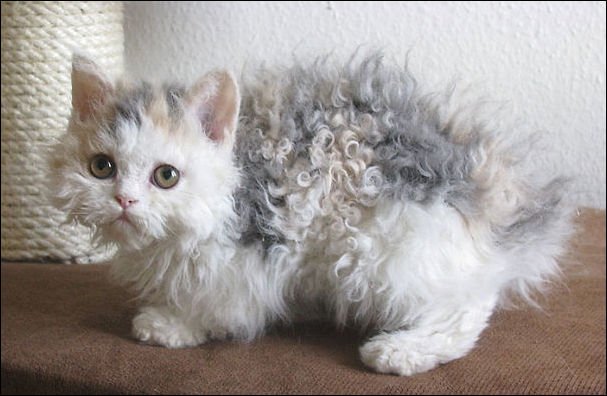 ▼這樣的貓咪屬於獨特的品種「Selkirk rex」(塞爾凱克鬈毛貓)。世界上所有的塞爾凱克鬈毛貓都能追溯到同一個母親:Miss Dipesto。1987年時,這隻特別的貓咪出生在蒙大拿州的一個收容所。牠的兄弟姊妹都是普通的直毛貓,只有牠最特別。