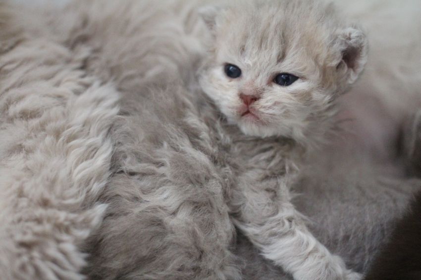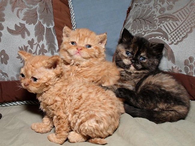▼在此之前,大家從來沒見過捲毛貓,Miss Dipesto也成為了明星。牠長大後生下了6隻小貓,其中3只是直毛貓,另外三隻則是超可愛的捲毛。研究人員認為這是基因突變的結果,到了2012年,這種特別的貓咪終於倍認定為獨立的品種。