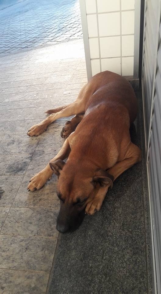 ▼這隻名叫馬龍(Marrom)的狗狗在流浪漢病發後就一直陪在他身旁,不願離去。當醫護人員趕到時,看到的就是馬龍守護在主人身旁的場景。好心的醫護人員知道馬龍非常擔心主人,所以沒有把牠趕到一旁,而是讓牠乘著救護車一同隨行。