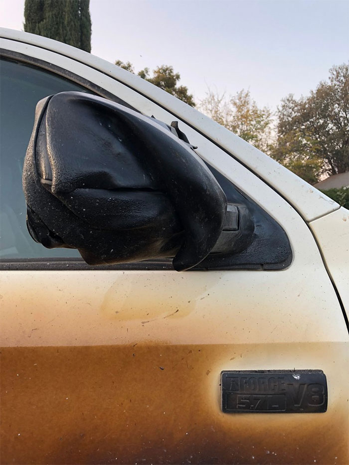 ▼因為火勢造成的高溫,車子許多地方都開始有「融化」的跡象。
