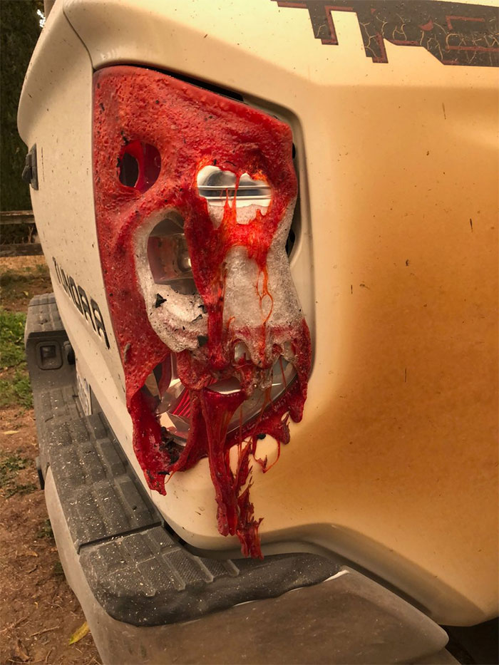 ▼艾林也開玩笑的表示,愛車變成了一顆經過燒烤的棉花糖模樣。