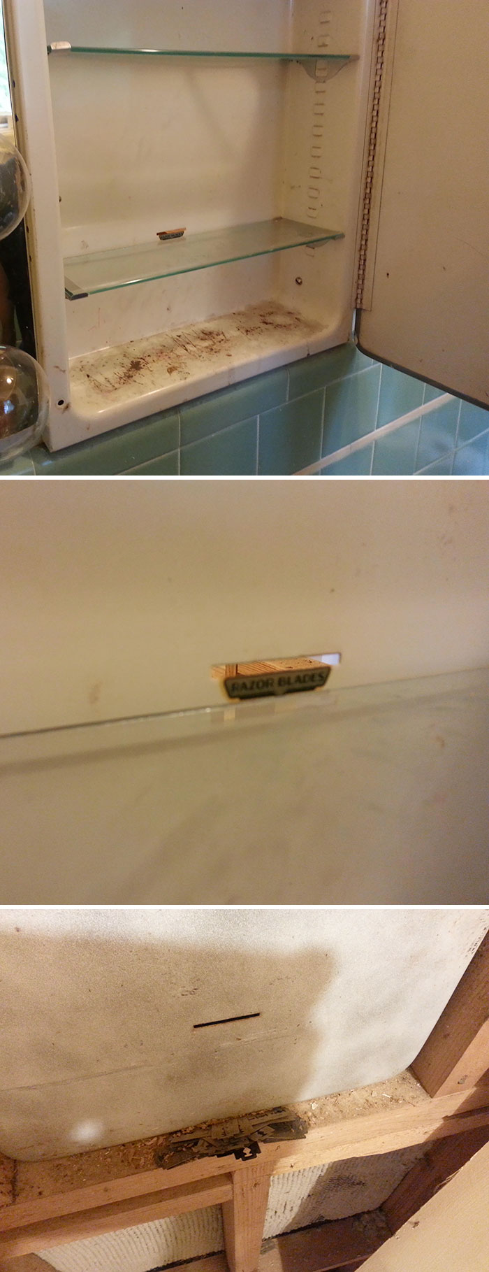 ▼1950年代的人就會將刮鬍刀片丟在牆壁後方了嗎!