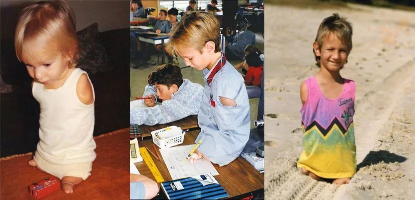 ▼1982年12月4日,在澳洲墨爾本一家普通的醫院中,尼克出生了。他患有海豹肢症,天生四肢發育不完全,僅在左臀以下有一個帶兩個趾頭的小「腳」。父母本來期望看到一個健康漂亮的孩子,看到他後徹底驚呆了。