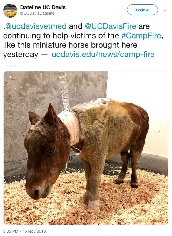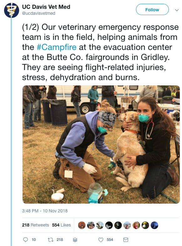 ▼加州大學戴維斯分校動物醫院收治了很多從野火中救出來的動物。那些毛孩沒有被主人遺棄,只是野火蔓延速度太快,主人們沒機會趕回家救牠們。