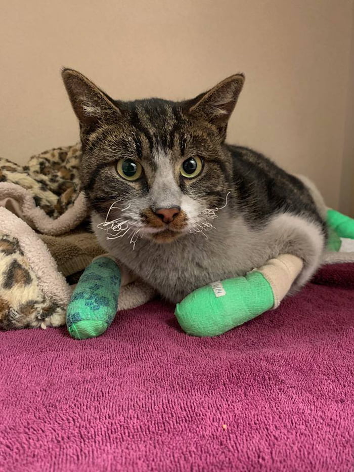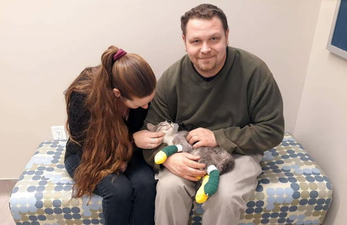 ▼Mayson的四肢經過治療已經沒有大礙。Laci和Curtis很快趕到動物醫院,與自家的貓咪團聚。Mayson躺在主人的懷裡,狀態非常好,牠大概也知道,危險已經過去了。