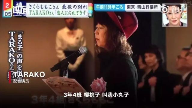 ▼在告別儀式上,當小丸子配音的聲優TARAKO用小丸子的聲音悼念櫻桃子的時候,在場的所有人都瞬間淚目:「現在我長大了,變成了天使,要去天國了。無論在哪兒,都會一直一直畫下去。即使我重生了,我也是那個小小的圓圓的、冒冒失失的、喜歡布丁和山口百惠的、最喜歡漫畫的櫻桃子。再見了!」TARAKO坦言小丸子是自己人生的一半,自己的命運也因此而改變,「櫻桃子老師改變了我的生活。在小丸子火之前,我一直在打工,過著艱辛的日子。」