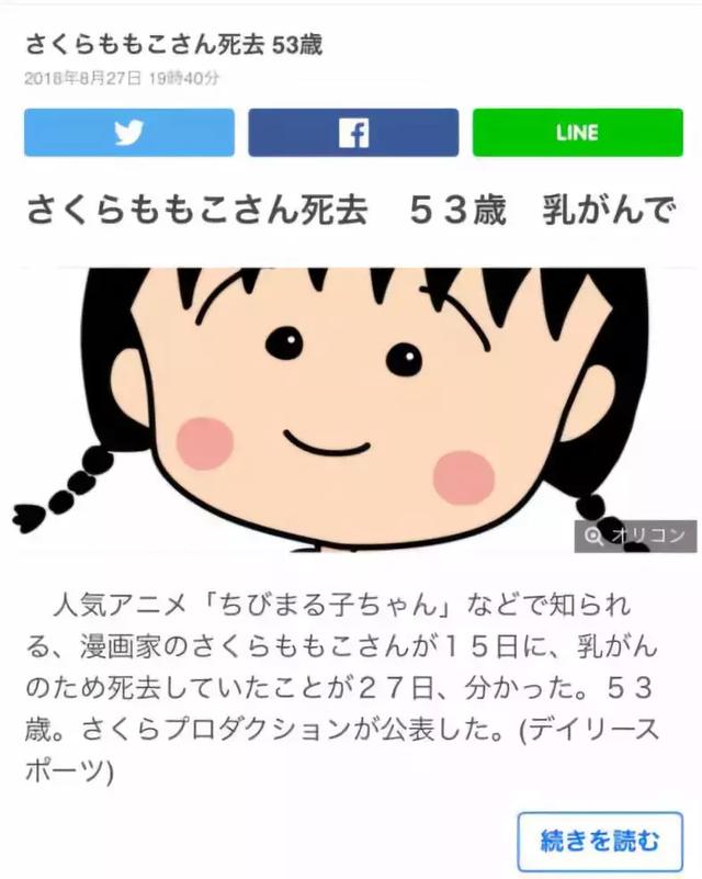 2018年11月21日日本人氣漫畫《櫻桃小丸子》是很多七、八年級生的童年記憶,當時只是覺得好玩,並未參透小丸子的人生歪理,長大後才發現她說的都很有道理,小丸子豁達的心胸也是作者櫻桃子內心的真實寫照,但就在今年的8月15日,傳來了櫻桃子因乳腺腫瘤離開的噩耗,日本各界人士都前來出席了她的告別儀式,看過這部動畫的網友們也都表示非常難過。