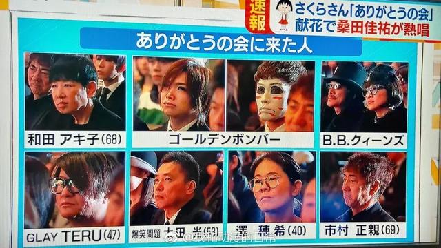 ▼桑田佳祐在告別儀式上獻唱了由櫻桃子作詞的《小丸子》片尾曲《100萬年的幸福》,熟悉的旋律立刻讓人浮現小丸子動畫中的畫面。