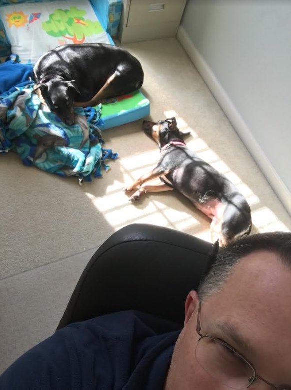 ▼Michael是一名抽屜滑軌製造商,平時就在家工作,Meeka一隻陪伴在他的左右。在家工作當然要規劃好時間,這一點兩隻狗狗幫不上忙,但只要牠們在身邊,Michael就元氣滿滿,工作效率也很高。