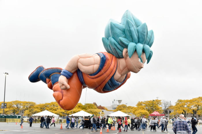 ▼梅西百貨感恩節遊行最大的賣點是巨型氣球。《七龍珠超》的主角悟空氣球首次加入了遊行陣容。悟空氣球足足有17米高,需要90人在地面牽著繫繩前進。