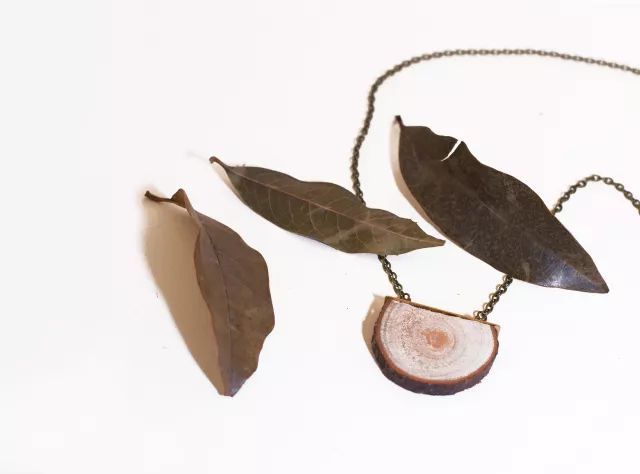 ▼枯樹幹做成的燈檯、茶台、筆架,乾花鑲嵌的壁畫和風鈴,還有樹葉項鏈,松果耳釘,就這樣她的桌子慢慢唱出了一片「森林」。