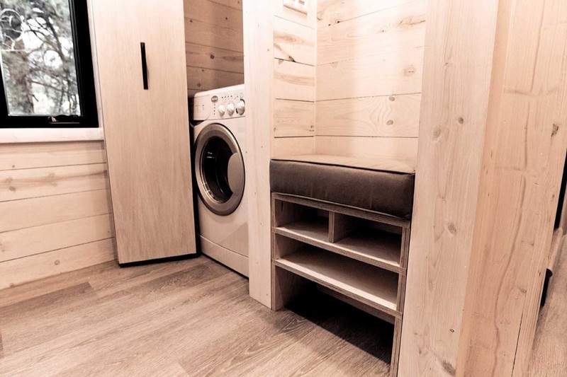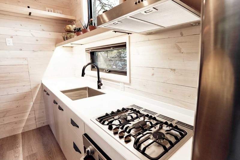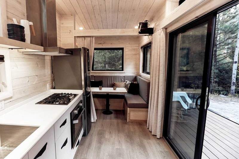 ▼「Draper」麻雀雖小,五臟俱全,具有獨立式玄關、露天陽台、專屬客廳、整套系統廚房、獨立衛浴系統附淋浴間。如果不是下面的輪胎,你可能以為這是一間獨立的小屋。