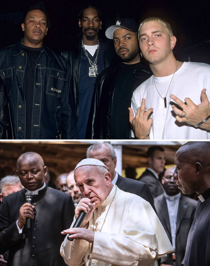 隨著網路的發展和社群網站的崛起,我們越來越容易在網路上找到各種照片,也讓一些網友發現了這種全新的開玩笑方式!他們發揮了過人的想像力,將完全不同的兩個人放在一起,做出各種令人啼笑皆非的有趣合成圖!一起來看看這些網友的創造力有多麼強大吧: