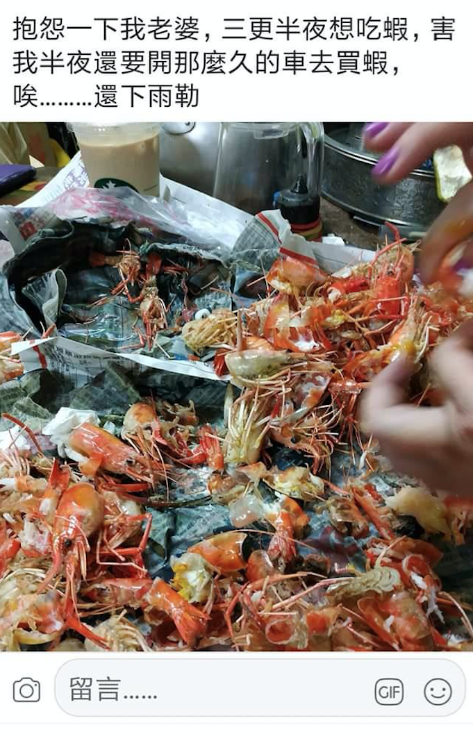 為了老婆深夜下雨也開車去買蝦 不滿網友笑「妻奴」320字回嗆
