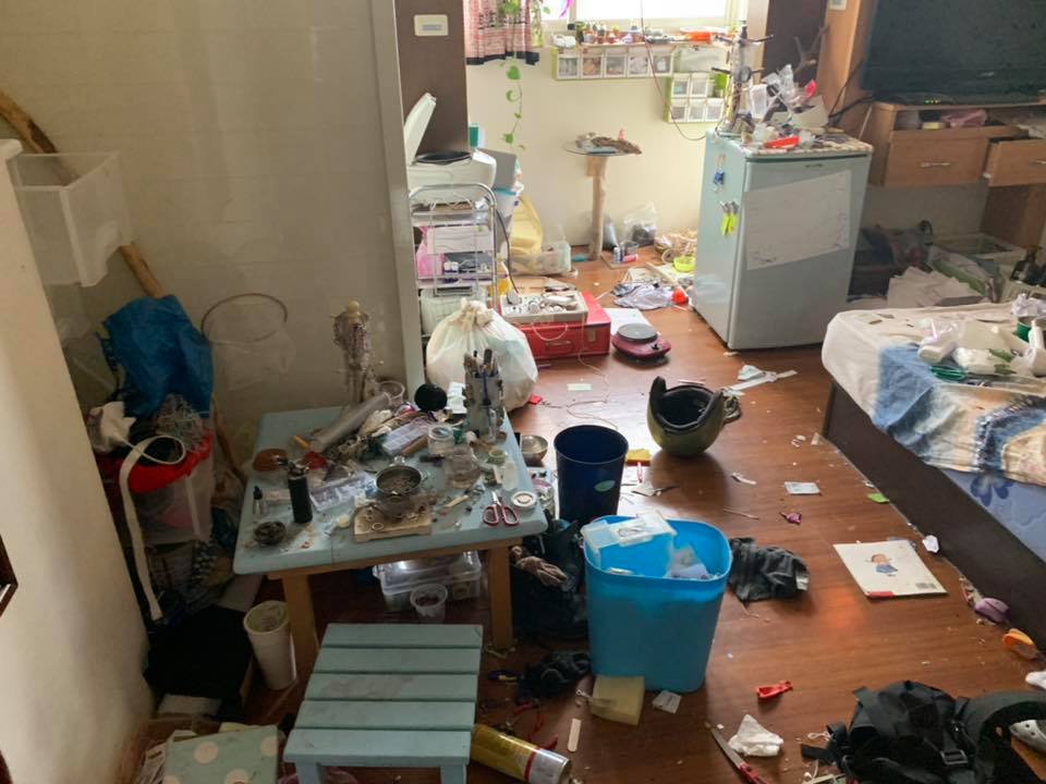 ▼原來這位媽媽將他的房子當成了噴漆工作房、養狗房,房間內也堆滿垃圾,環境髒亂不已。