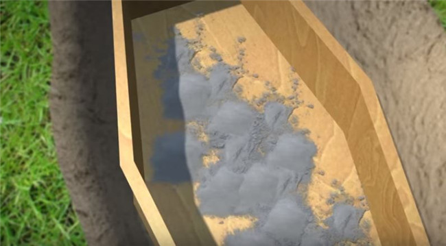 ▼這些骨灰會被裝進一個可生物降解的袋子中,大小就跟一袋馬鈴薯差不多,然後埋進淺墳中即可,而一些無法分解的部分比如像牙齒填充物等,都會交還給家人保管。