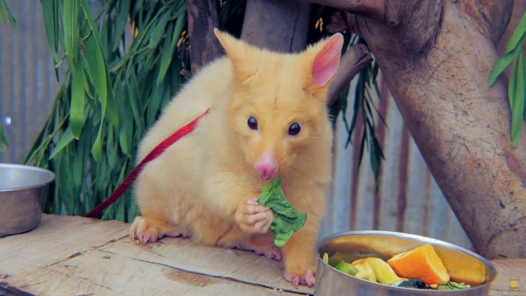 2018年12月05日在澳洲,負鼠一般又稱為袋貂(Possum),而牠們的毛色,大多是以棕、灰、黑、白所組成。但其中也有突變種,全身毛色竟是異常醒目的金黃色,因此又被稱作為「黃金袋貂」(Golden Possum)。牠們和日本知名動漫卡通「皮卡丘」(Pikachu)有著極為相似的外貌,只差臉上沒有兩個紅紅的電氣袋而已,但一樣是又萌又可愛!