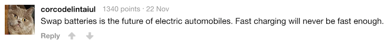 ▼有不少外國網友讚揚這個科技,指出:「交換電池肯定是未來電子產品的趨勢,快速充電永遠不可能比這更快。」
