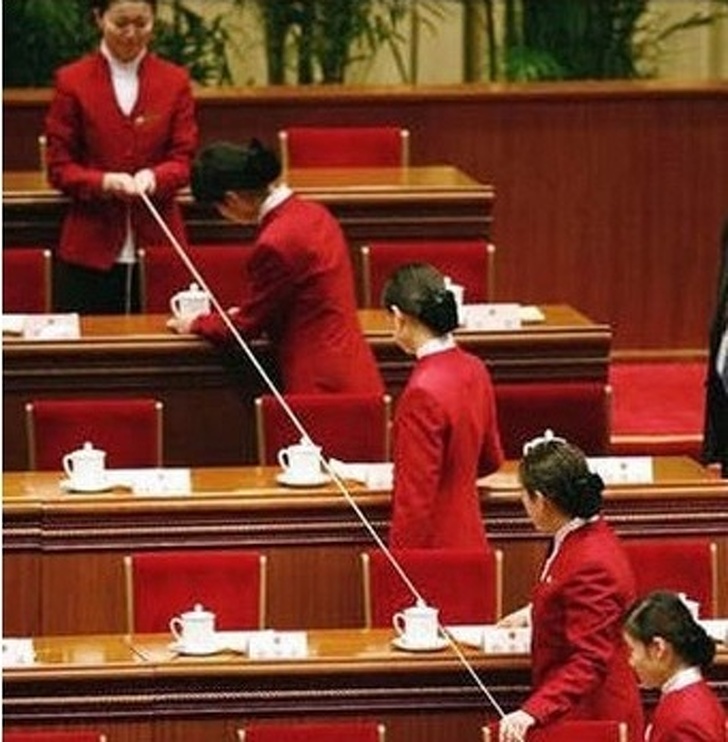 ▼3.注重和諧統一:日本社會的普世價值是「和」,也就是團結和諧。從人際交往,到日常生活,這都是日本人的重要原則。照片中的工作人員正在整齊排列桌上的杯子,讓它們看起來更加統一和諧。