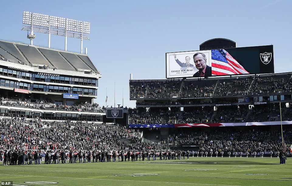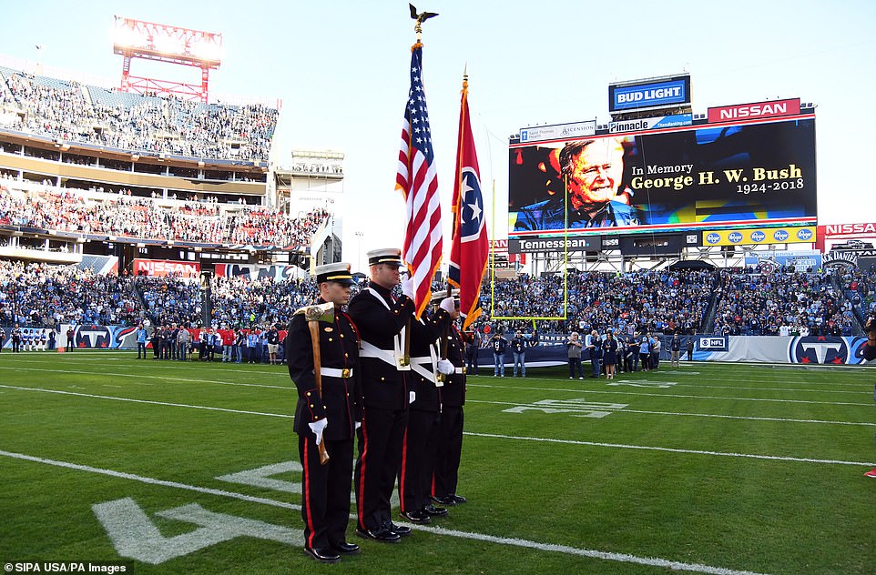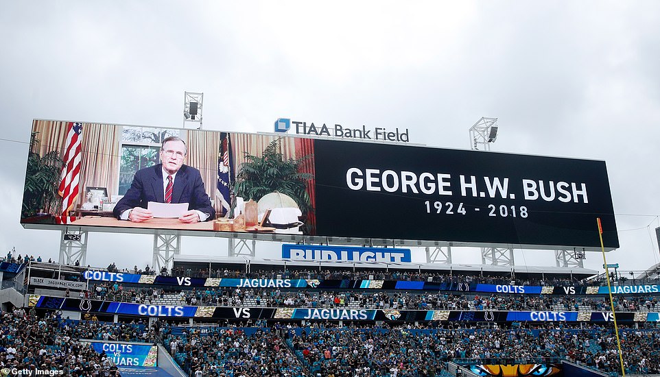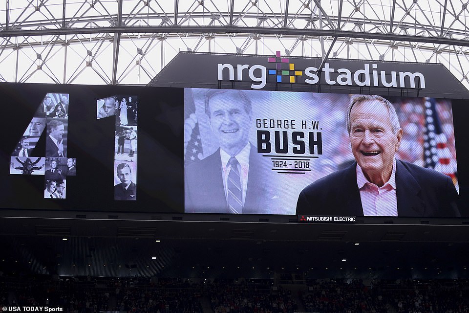 ▼老布希生前是個不折不扣的運動迷,在尚未行動不便之前,也常常親臨各種運動賽事,以實際行動表達支持。因此在他辭世後,包括美國職籃(NBA)、職業橄欖球(NFL)、冰上曲棍球(NHL)…等,各大運動殿堂在開賽前,皆特地進行了簡單的追悼儀式,並全場起立默哀,紀念這位令人尊敬的第41任前美國總統。