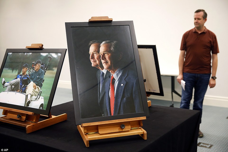 ▼這是老布希的兒子、也就是第43任前美國總統「喬治‧華克‧布希」(George Walker Bush)所為他作的畫。並放置在以小布希命名的「總統圖書博物館」內進行展覽。