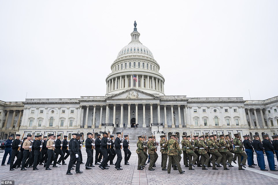 ▼圖為在美國首都華府(Washington, D.C),準備為老布希的追悼儀式,進行服務的陸海空三軍護衛隊。