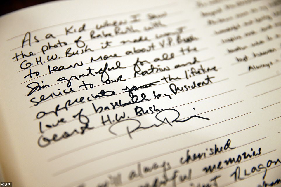 ▼在老布希辭世後,現任美國總統「唐納‧約翰‧川普」(Donald John Trump)不但隨即發表哀悼,並立刻派遣空軍一號,來到了休士頓載運其棺木,準備轉移到首都華府,進行最高榮譽的國家級追悼紀念儀式。雖然過往川普與布希家族之間,多有不悅與磨擦衝突,但在這一刻卻還是選擇放下,認同老布希生前的偉大貢獻與成就。