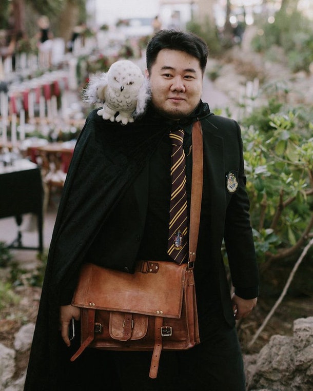 ▼這對來自美國加州的新人,辛蒂(Cindy)和馬修(Matthew),在網路上分享了他們的婚禮花絮。全場佈置皆參照由J‧K‧羅琳所撰寫、並翻拍成電影系列的小說《哈利波特》(Harry Potter) 為範本去設計,並原汁原味地打造出了魔法學院的樣貌。沒想到婚禮照片一出,竟然令全球的魔法迷都嘆為觀止,並紛紛大喊:「我也好想去參加!」