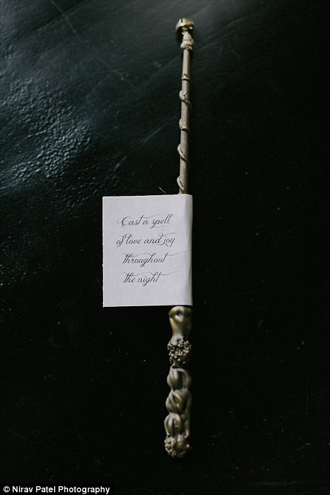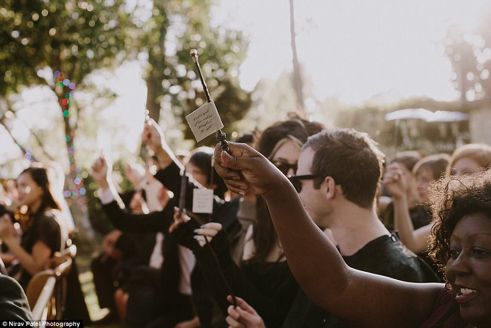 ▼每位前來觀禮的賓客們,都能拿到屬於自己的魔杖。不得不說這個婚禮小物實在太脫俗了,而且質感也不錯,收到的人應該都很開心吧!或許在宴會派對上,大家還能來上一場精彩的魔法決鬥呢!(笑)