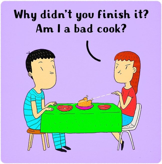 「你為什麼沒吃乾淨?我做的菜很難吃嗎?」