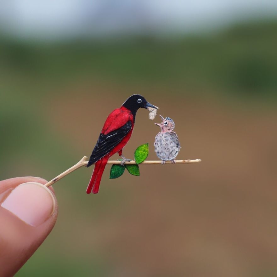 2018年12月06日印度剪紙藝術家Nayan Shrimali和Vaishali Chudasama有一個大計畫,他們會花1年的時間,製作365個不同品種的微型鳥類紙雕。先畫草稿,然後剪下羽毛、鳥喙、爪子,上色後把各部分組合起來。雖然這些作品很小,有些只有幾公分高,但都栩栩如生。