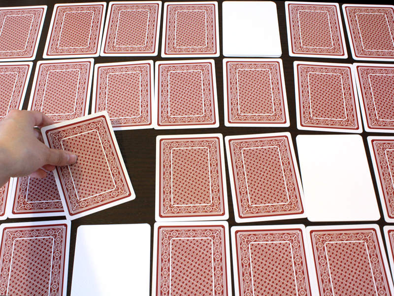 ▼將紙牌全部攤開,如果不仔細觀察,恐怕很難發現它們的差異,更不要說打散後記住它們的位置了。