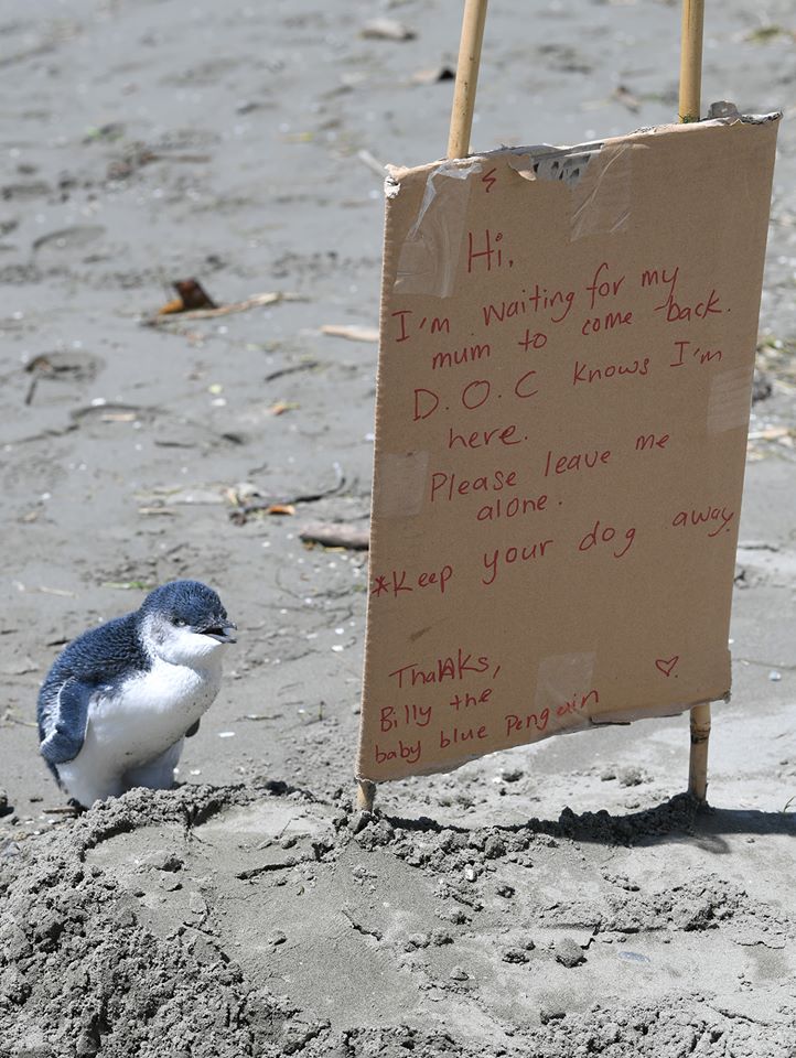 ▼​這隻小企鵝似乎知道留言板是為自己寫的,一直在附近跑跑跳跳。不過牠的爸爸媽媽並沒有出現,隔天紐西蘭保育部就將牠送到了基督城企鵝復育中心檢查,還給牠取名為Billy。