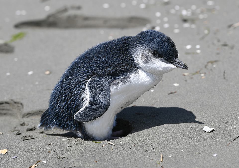 紐西蘭男子Jeff Mein Smith騎自行車經過海岸時,發現一群人正聚在沙灘的一角。原來那裡有一隻小藍企鵝寶寶,牠跟家人走散了,只能獨自在沙灘徘徊。人們好奇圍著牠看,還有人帶著狗狗靠近,讓小藍企鵝非常驚恐。