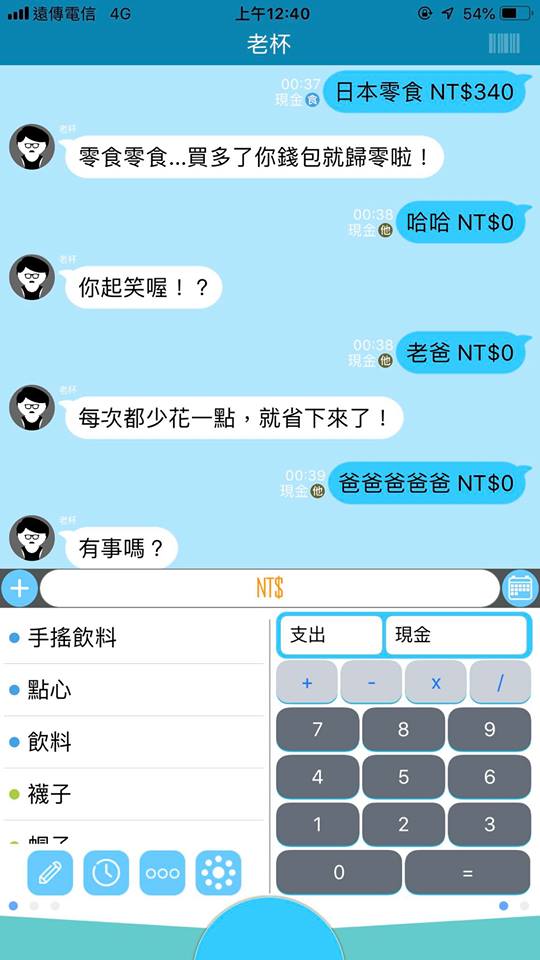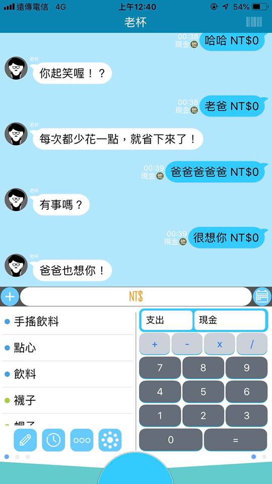 ▼一位女網友在臉書《爆廢公社公開版》分享了自己將App設定成父親後模樣,每次當她記下一筆花費時,系統還會模擬家長的碎碎唸,仿佛真實有人在跟自己對話一樣!